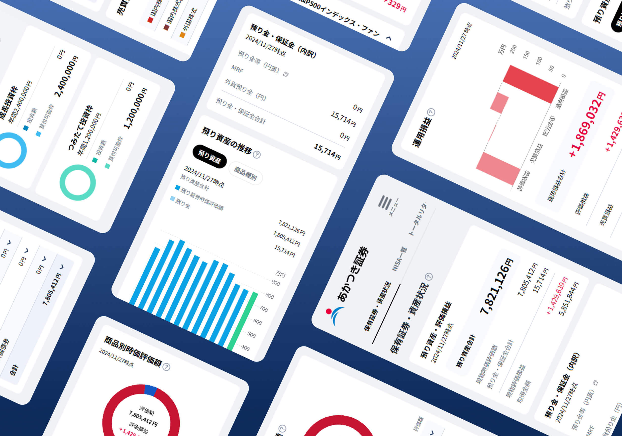 あかつき証券に口座をお持ちの方向けの、お客様情報サイト「あかつき資産ナビ」の情報設計、UIデザインなどを担当しました。サイトリリース後も継続的な機能追加、改修を担当しています。
